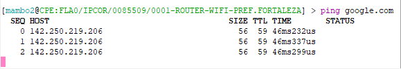 2 - Verifique se o Mikrotik possui conexão a internet, um método simples é realizar um ping para algum domínio dentro do New Terminal, por exemplo google.com