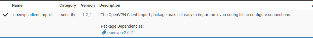 2 - Selecione em Avaliable Packages o pacote openvpn-client-import e instale o mesmo: