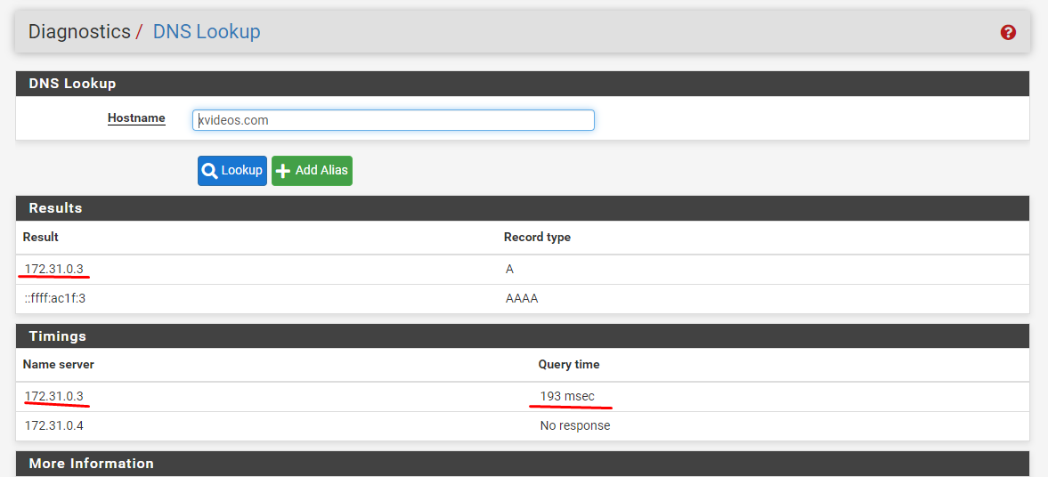 13 - Voltamos ao PFsense, e fazemos os testes via Diagnostics > DNS Lookup: