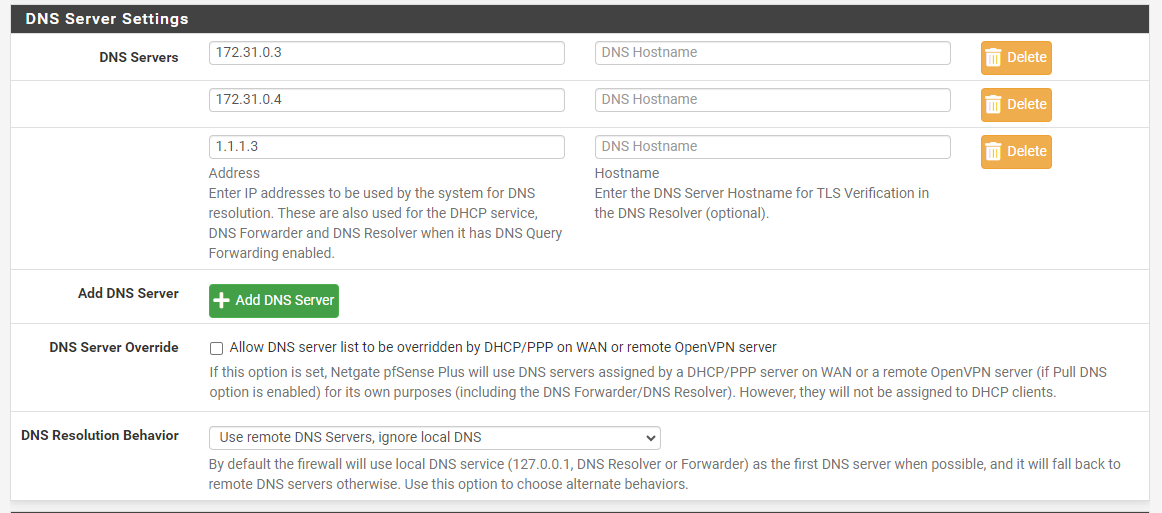 8 - Modifique o DNS Server Settings para 172.31.0.3 e 172.31.0.4, além de algum outro DNS como terceiro caso os dois primeiros fique offline,deixe conforme abaixo: