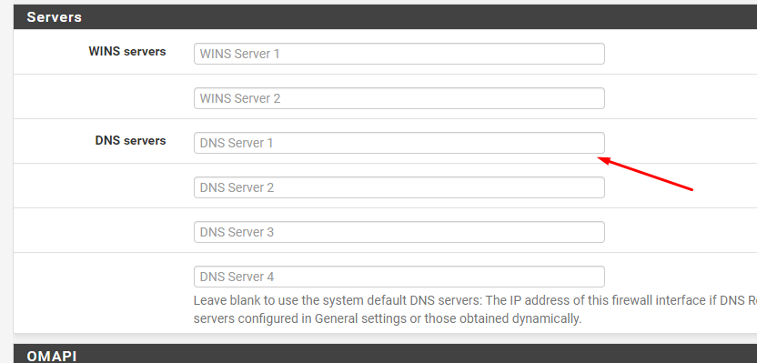 Na INTERFACE LAN que o cliente utiliza (pode ser VLAN, LAN etc), deixe os campos de DNS em BRANCO: