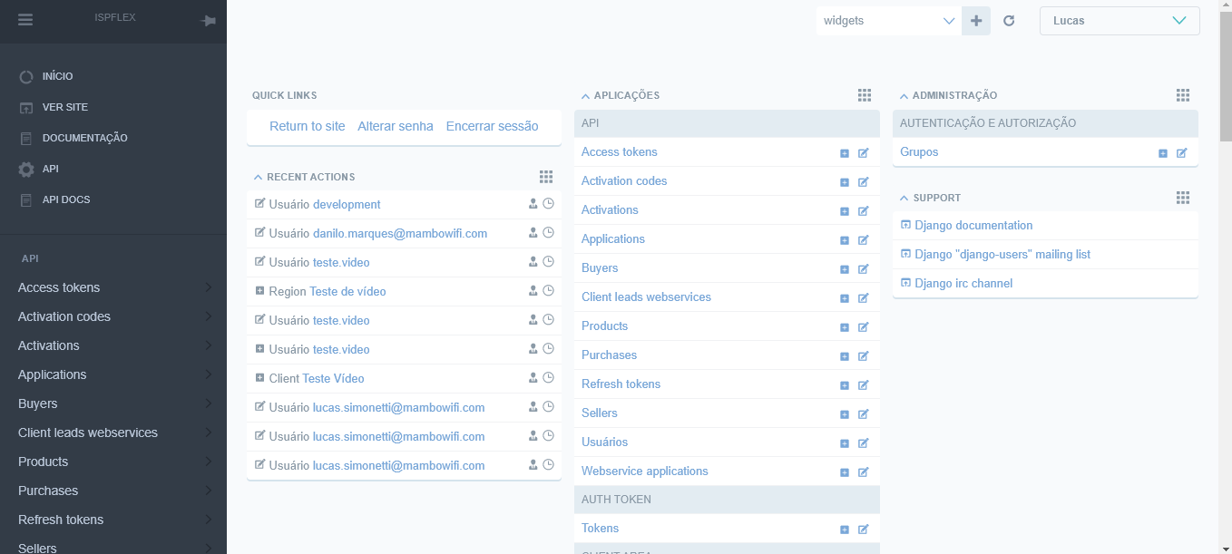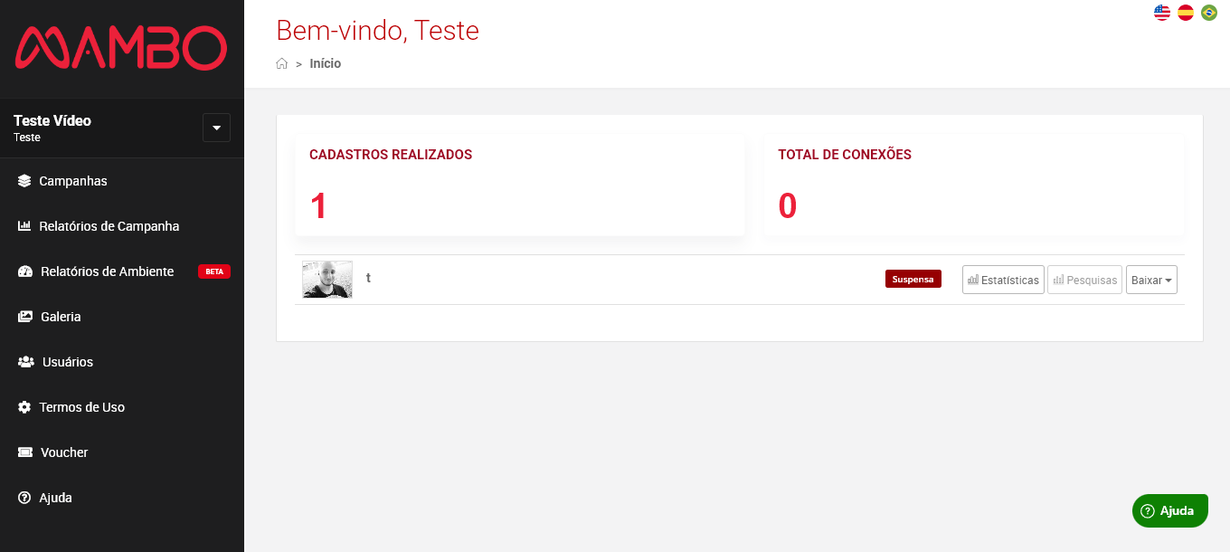 Usuários: Aqui você gerencia todos os usuários, tanto de clientes quanto de colaboradores da empresa Mambo. É possível criar, editar, inativar e excluir os usuários. É aqui também que trocamos de painel, acessando nosso usuário e acessando o client que ele está atrelado.