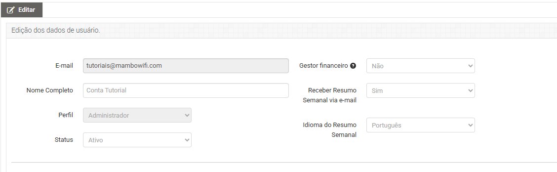 Verifique se a opção “Gestor Financeiro” está como “SIM”