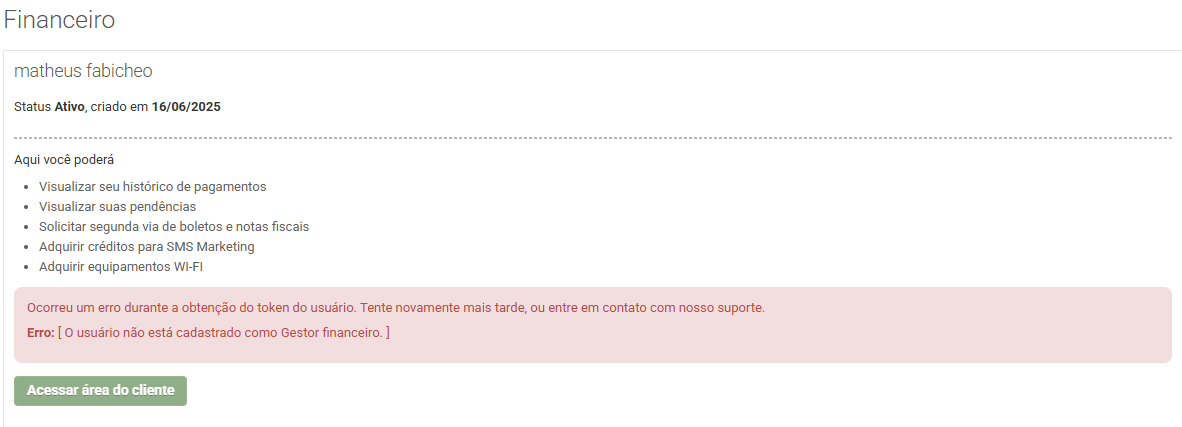 Análises a serem feitas quando o cliente não estiver conseguindo acessar o menu financeiro: