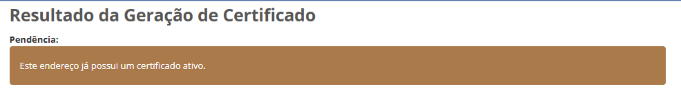 Se a URL já possuir um certificado ativo, você verá a mensagem informando que a URL já possui um certificado ativo: