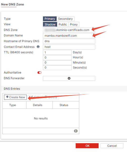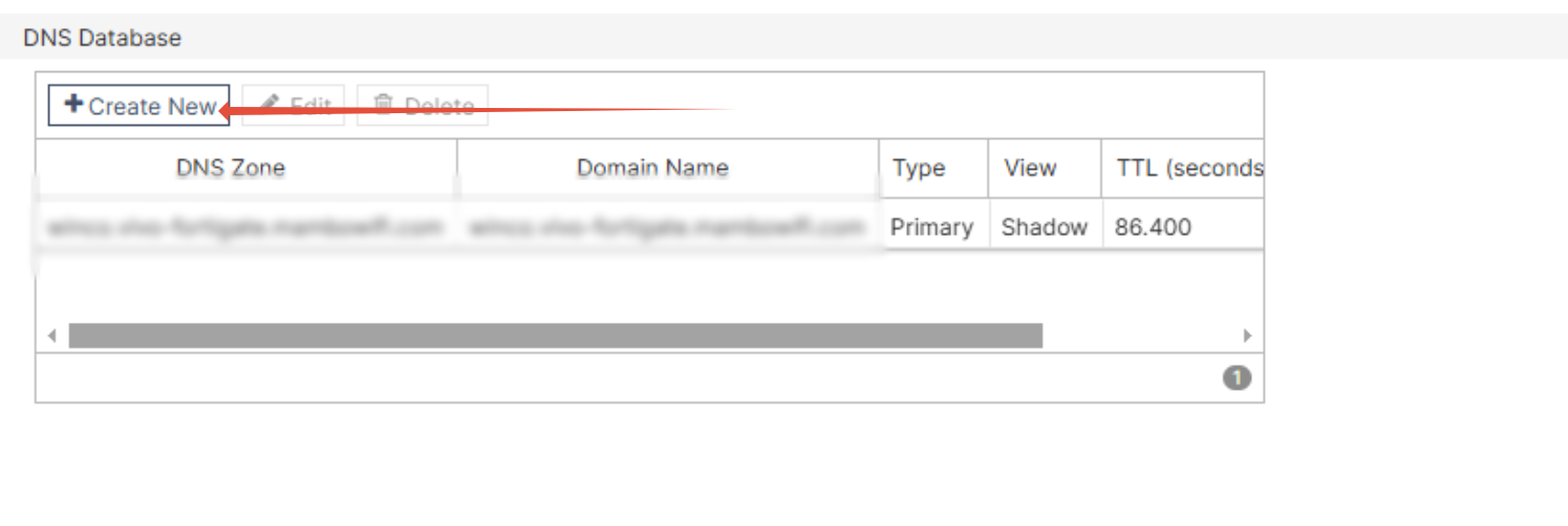 7°Em DNS Servers > DNS Database > Create New
