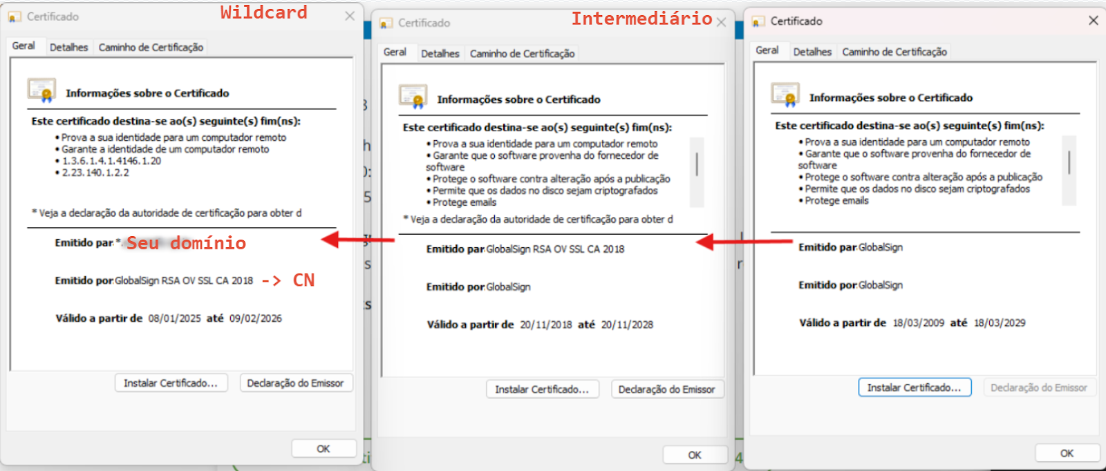 Para isso, identifique o nome do CN do seu certificado Wildcard, conforme imagem abaixo.