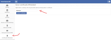 Insira a URL do painel informada pelo cliente (Ex: *.domain.com.br ou painel.domain.com.br).